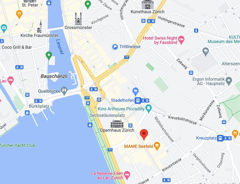 Unser Büro ist in 2 Gehminuten ab Bahnhof Zürich Stadelhofen erreichbar.